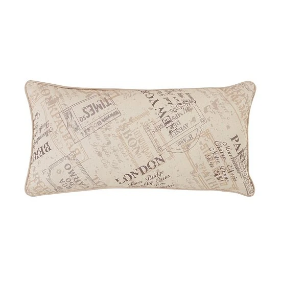 - Stamp your passport with this Biscotti accent pillow featuring tourist attractions from around the globe.