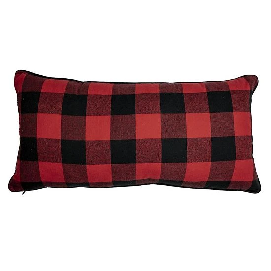 - This charming flannel rectangle decorative pillow adds a rugged look to any room in your home. The front is a soft red and black flannel and the back reverses to a blue and black flannel