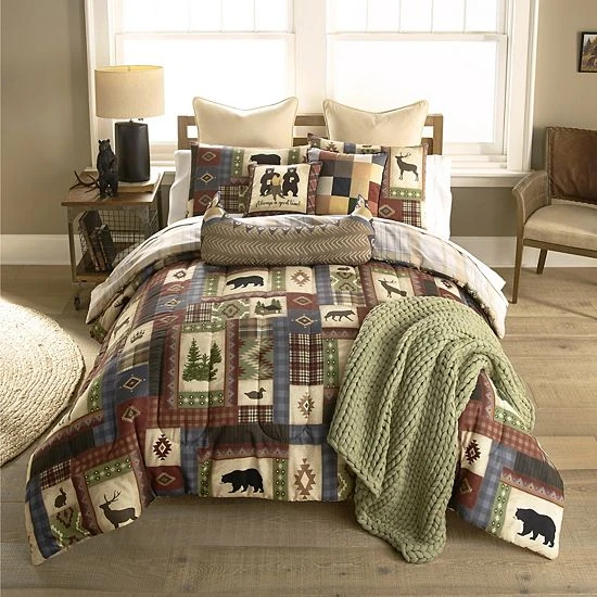 - Forest Grove from Donna Sharp is a rustic bedding ensemble featuring a series of wildlife and cabin motifs framed inside a patchwork of plaid, gingham and geometric patterns. Colors include deep red, chestnut, golden brown, olive green, tan, parchment and denim blue. The reverse features an all-over large plaid in peaceful coordinating colors.