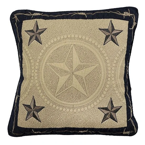 - The Fort Worth dec pillow is beautifully embossed with the Texas Star design and enhanced with a barb wire outline and intricate stitching and embroidery. This accent piece is a stunning addition to a master bedroom or any bedroom in your home. The Southwestern feel of the brown, black and beige colors have a rich earth-tone feel and coordinate with many room color schemes.