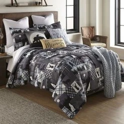 - Take a stroll through the moonlight with this beautiful comforter set. Nightly Walk is a reversible lodge themed set with a modern grid design. This beautiful bedding set depicts the moonlit creatures and landscapes found in nature.