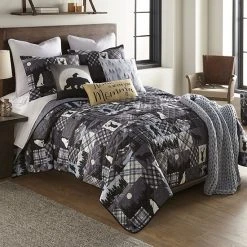 - Take a stroll through the moonlight with this beautiful quilted bedding set from Donna Sharp. Nightly Walk is a reversible, stunning lodge themed set with a modern grid design. This beautiful bedding set depicts the moonlit silhouettes of creatures and landscapes found in nature using black, taupe, sky blue, vanilla, and slate colors.