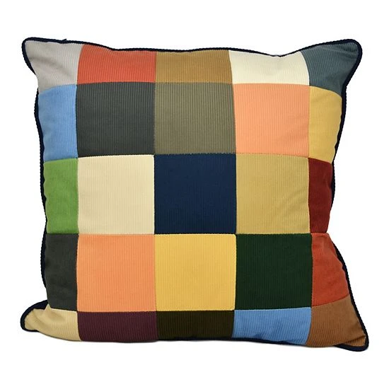 - This funky little decorative pillow will add spunk to any room with its vivid pattern of bold colors in corduroy squares in a patchwork formation.