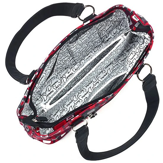 This Donna Sharp shoulder bag has a spot for all your essentials with a divided zip center compartment on the inside to keep you organized.